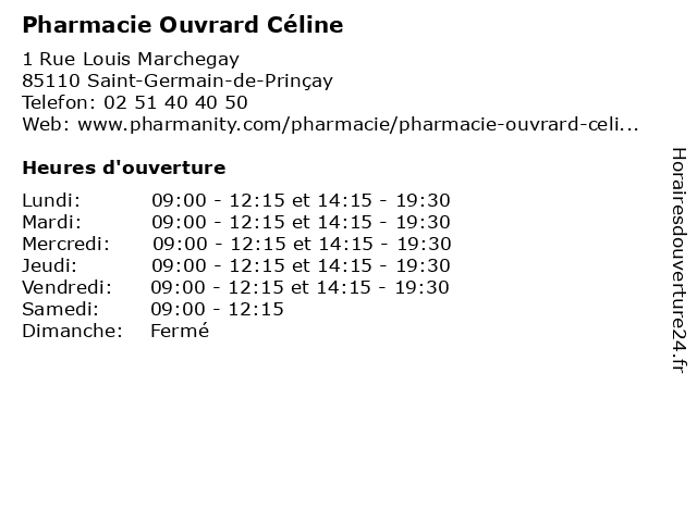 | Mardi | 09:00-12:15 et 14:15-19:30 |