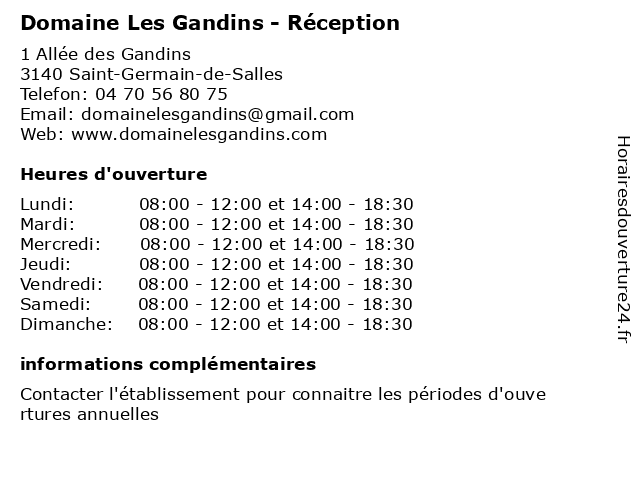 | Dimanche | 08:00-12:00 et 14:00-18:30 |