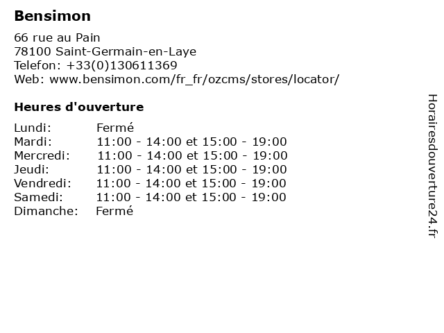 | Mercredi | 11:00-14:00 et 15:00-19:00 |