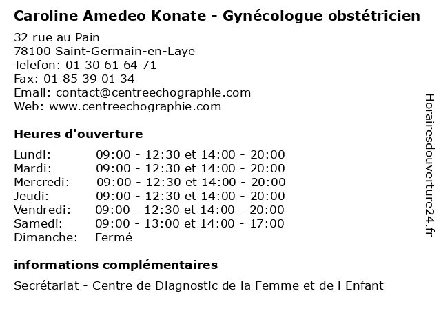 1 Dr Laurent Bidat - Gynécologue obstétricien (Distance: 0,00 km) 32 rue au Pain, 78100 Saint-Germain-en-Laye bidat, consultation, docteur, dr, gynécologue, laurent, med, médecin, obstétricien, traitement 2 Dr Daniela Buzas - Gynécologue obstétricien (Distance: 0,00 km) 32 rue au Pain, 78100 Saint-Germain-en-Laye buzas, consultation, daniela, docteur, dr, gynécologue, med, médecin, obstétricien, traitement 3 Dr Petra Gabor - Gynécologue obstétricienne (Distance: 0,02 km) 32-34 Rue au Pain, 78100 Saint-Germain-en-Laye docteur, dr, gabor, gynecologue, gynécologue, obstretricien, obstétricienne, petra, sante 4 Caroline Rousseau - Diététicien - secrétariat (Distance: 0,09 km) 28 Rue des Louviers, 78100 Saint-Germain-en-Laye cabinet, caroline, diététicien, diététique, medical, rousseau, secrétariat 5 Dr Claude Akriche - Gynécologue médical et obstétrique (Distance: 0,17 km) 14 Place Charles de Gaulle, 78100 Saint-Germain-en-Laye akriche, bebe, claude, dr, et, gynecologie, gynécologue, maternite, médical, obstetrique, obstétrique 6 Dr Marc Guibert - Gynécologue obstétricien (Distance: 0,24 km) 20 Rue du Docteur Timsit, 78100 Saint-Germain-en-Laye dr, guibert, gynécologue, marc, médecin, obstétricien, obstétrique |