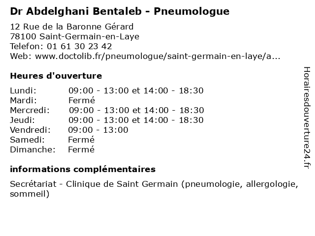 1 Dr Abdelghani Bentaleb - Pneumologue (Distance: 0,02 km) 12 Rue de la Baronne Gérard, 78100 Saint-Germain-en-Laye abdelghani, amiens, bentaleb, chu, consultation, d'allergologie, de, dermatologie, docteur, dr, dr., et, medecins, pneumologie, pneumologue, rendez, santé, service, sur, vous 2 Dr Tayeb Rebbahi - Pneumologue (Distance: 0,00 km) 12 Rue de la Baronne Gérard, 78100 Saint-Germain-en-Laye docteur, dr, generaliste, medical, pneumologue, rebbahi, soin, tayeb 3 Dr Sylvie Merrien - Pneumologue (Distance: 7,70 km) 19 Avenue Eglé,, 78600 Maisons-Laffitte dr, merrien, médecins, médicaments, pneumologue, santé, secrétariat, spécialiste, sylvie 4 Dr Clement Picard - Pneumologue - secrétariat (Distance: 10,52 km) 40 Rue Worth, 92150 Suresnes clement, dr, médecins, médicaments, picard, pneumologue, santé, secrétariat, spécialiste 5 Dr Didier Grapin - Pneumologue (Distance: 12,44 km) 9 Avenue Charles de Gaulle,, 92100 Boulogne-Billancourt didier, dr, grapin, médecins, médicaments, pneumologue, santé, secrétariat, spécialiste 6 Dr Sondosse Abdelghani - Chirurgien-dentiste (Distance: 15,52 km) 10-12 Place des Cerclades, 95000 Cergy abdelghani, chirurgien, consultation, dentiste, docteur, dr, med, médecin, médecine, secrétariat, sondosse, traitement |