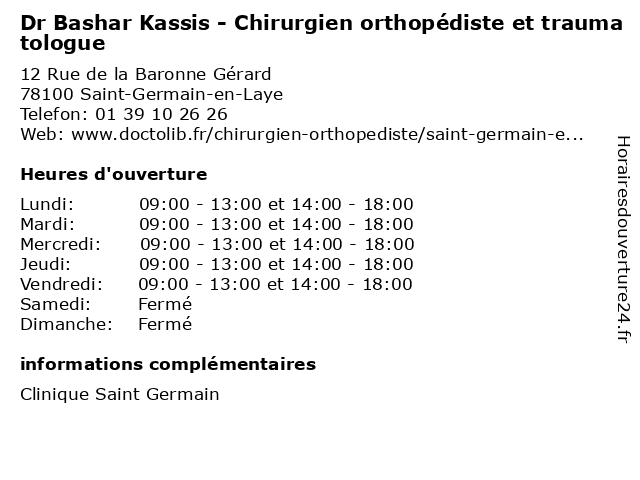 1 Dr Alain Michaud - Chirurgien orthopédiste et traumatologue (Distance: 0,00 km) 12 Rue de la Baronne Gérard, 78100 Saint-Germain-en-Laye alain, chirurgien, dr, et, michaud, orthopédiste, traumatologue 2 Dr Bruno Barbato - Chirurgien orthopédiste et traumatologue (Distance: 0,02 km) 12 Rue de la Baronne Gérard, 78100 Saint-Germain-en-Laye barbato, bruno, chirurgie, chirurgien, dr, et, general, orthopédiste, soins, traumatologue 3 Dr Jean-Louis Blin - Chirurgien orthopédiste et traumatologue (Distance: 0,02 km) 12 Rue de la Baronne Gérard, 78100 Saint-Germain-en-Laye blin, chirurgien, dr, et, jean, louis, orthopedie, orthopédique, orthopédiste, trauma, traumatologie, traumatologique, traumatologue 4 Dr Majid Mahammedi - Chirurgien orthopédiste et traumatologue (Distance: 0,10 km) 20 Rue Armagis, 78100 Saint-Germain-en-Laye chirurgien, dr, et, mahammedi, majid, orthopédiste, traumatologue 5 Dr Nacer-Eddine Debit - Chirurgien orthopédiste et traumatologue (Distance: 0,10 km) 20 Rue Armagis, 78100 Saint-Germain-en-Laye chirurgien, debit, dr, eddine, et, nacer, orthopédiste, traumatologue 6 Dr Anis Chouk - Chirurgien orthopédiste et traumatologue (Distance: 5,05 km) 63 Avenue Paul Doumer, 78360 Montesson anis, chirurgien, chouk, dr, et, orthopédiste, traumatologue |