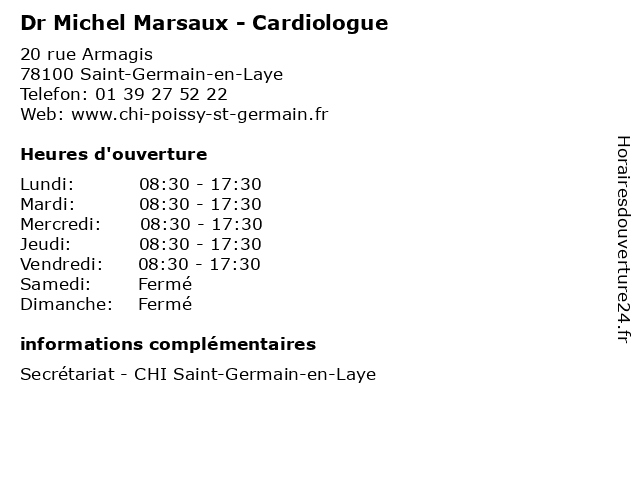 1 Dr Michel Marsaux - Cardiologue (Distance: 5,14 km) 10 rue du Champ Gaillard, 78303 Poissy cardio, cardiologie, cardiologue, centre, chirurgien, dr, en, germain, hospitalier, intercommunal, laye, marsaux, michel, poissy, poissy/saint 2 Dr Boryana Avramova - Cardiologue (Distance: 0,00 km) 20 rue Armagis, 78100 Saint-Germain-en-Laye avramova, boryana, cardiologue, consultation, docteur, dr, med, médecin, médecine, traitement 3 Dr Michel Pathe - Cardiologue (Distance: 0,00 km) 20 rue Armagis, 78100 Saint-Germain-en-Laye cardiologue, consultation, docteur, dr, med, michel, médecin, médecine, pathe, traitement 4 Dr Fatiha Thillier - Cardiologue (Distance: 0,00 km) 20 rue Armagis, 78100 Saint-Germain-en-Laye cardiologue, consultation, docteur, dr, fatiha, med, médecin, médecine, thillier, traitement 5 Dr Dina Zannier - Cardiologue (Distance: 0,00 km) 20 rue Armagis, 78100 Saint-Germain-en-Laye cardiologue, consultation, dina, docteur, dr, med, médecin, médecine, traitement, zannier 6 Dr Gérard Broutin - Cardiologue (Distance: 0,00 km) 20 rue Armagis, 78100 Saint-Germain-en-Laye broutin, cardiologue, consultation, docteur, dr, gérard, med, médecin, médecine, traitement |