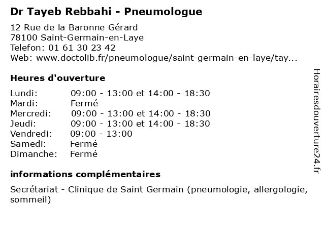 | Mercredi | 09:00-13:00 et 14:00-18:30 |