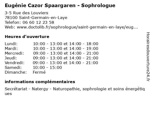 | Lundi | 10:00-13:00 et 14:00-18:00 |
