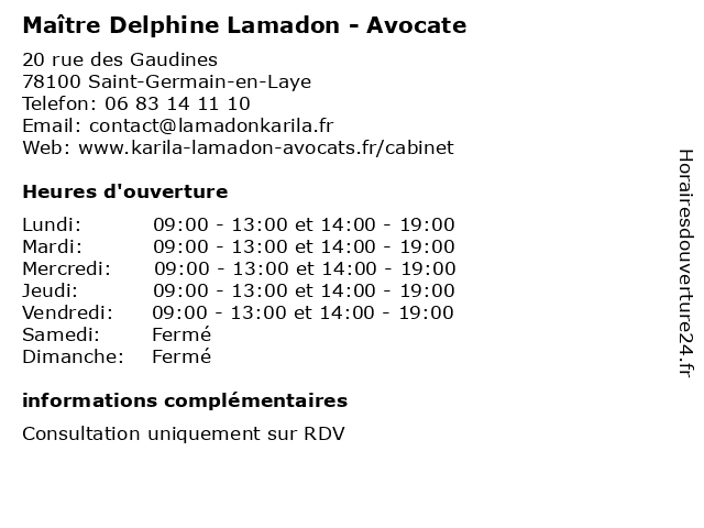 | Lundi | 09:00-13:00 et 14:00-19:00 |