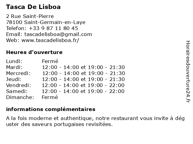 | Mardi | 12:00-14:00 et 19:00-21:30 |