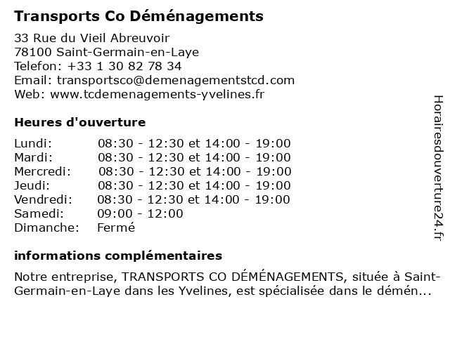 1 Transports Co Déménagements (Distance: 5,06 km) 3 Quai Boissy d'Anglas, 78380 Bougival co, déménagements, transports 4 Broc & Co (Distance: 6,45 km) 22 Rue du Général Leclerc, 78420 Carrières-sur-Seine broc, brocante, business, co, co., commerce, magasin, vente 5 Factory & Co (Distance: 10,75 km) 15 Parvis de la Défense, 92800 Puteaux bagels, burgers, centre, co, commercial, factory, les, rapide, restauration, temps 6 Indigo & co (Distance: 11,22 km) 8 Rue Vieux Versailles, 78000 Versailles cheveux, co, coiffeur, indigo |