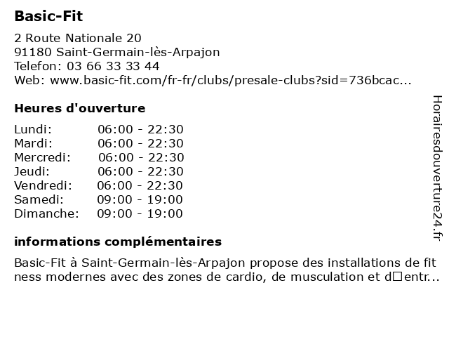 3 Basic-Fit (Distance: 7,81 km) 19 Avenue De La Croix Blanche, 91700 Sainte-Geneviève-des-Bois basic, fit 6 |