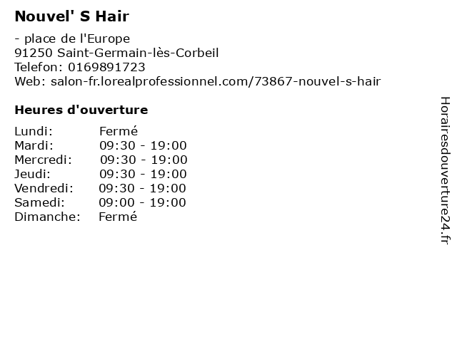1 Hair City (Distance: 2,44 km) 10 place du Plessis Saucourt, 91250 Tigery balayage, brushing, city, coiffeur, coiffure, coloration, coupe, hair 2 Nouvel'Hair (Distance: 5,87 km) 23 rue du Saule Saint Jacques, 91540 Ormoy balayage, coiffeur, coiffure, coloration, coupe, mèche, nouvel'hair, soins 3 Hair Look By Sylvie (Distance: 9,28 km) 2 rue du Général Lelong, 91230 Montgeron brushing, by, coiffeur, coiffure, coloration, coupe, hair, look, mèches, sylvie 4 Melis'Hair (Distance: 12,08 km) 6 Place de la Gare, 91600 Savigny-sur-Orge beauté, coiffure, coiffures, coloristes, melis'hair 5 Antoine Nouvel - Ostéopathe (Distance: 13,37 km) 29 Rue du Martroy, 91610 Ballancourt-sur-Essonne antoine, nouvel, ostéo, ostéopathe, ostéopathes, soins 6  |
