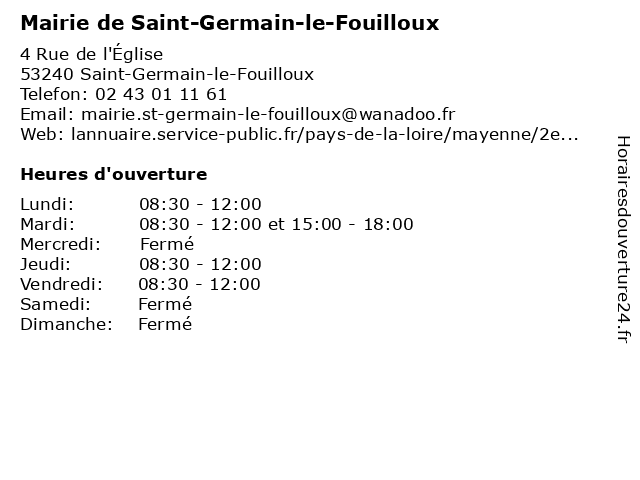 Termes de recherche pour Mairie de Saint-Germain-le-Fouilloux:le, de, saint, germain, administration, mairie, assoc public, fouilloux |
