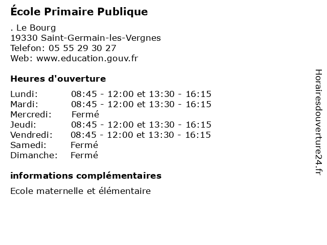 1 École Primaire Publique (Distance: 3,87 km) 6 Rue de la Croix Rouge, 19330 Favars cours, education, primaire, publique, services, école 2 École Primaire Publique (Distance: 8,45 km) 28 Grande Rue, 19150 Cornil cours, education, primaire, publique, services, école 3 École Primaire Publique (Distance: 8,55 km) . Rue Principale, 19410 Perpezac-le-Noir cours, education, primaire, publique, services, école 4 École Primaire Publique (Distance: 8,90 km) 10 Rue de la Gare, 19700 Lagraulière cours, education, primaire, publique, services, école 5 École Primaire Publique (Distance: 8,91 km) 6 Place de la Mairie, 19410 Saint-Bonnet-l'Enfantier cours, education, primaire, publique, services, école 6 École Primaire Publique (Distance: 8,95 km) . Le Bourg, 19700 Saint-Clément cours, education, primaire, publique, services, école |