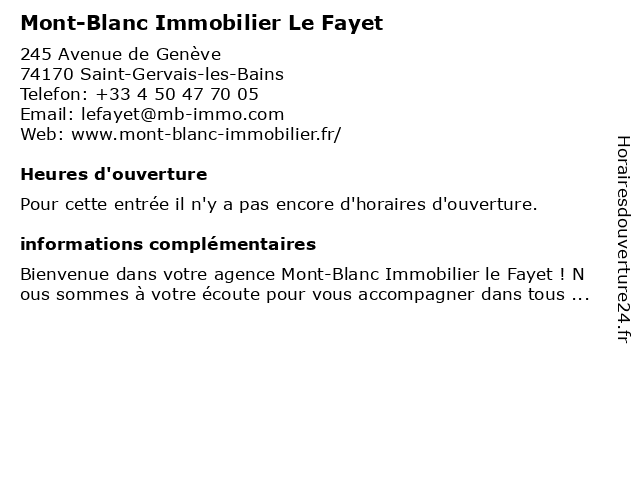 | Appeler Mont-Blanc Immobilier Le Fayet | |