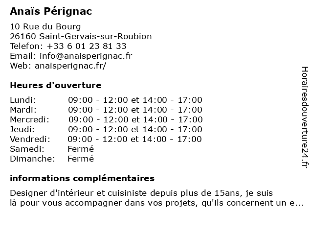 | Mercredi | 09:00-12:00 et 14:00-17:00 |