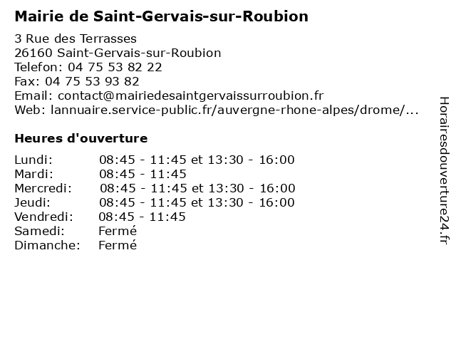 Termes de recherche pour Mairie de Saint-Gervais-sur-Roubion:sur, de, saint, gervais, administration, mairie, assoc public, roubion |