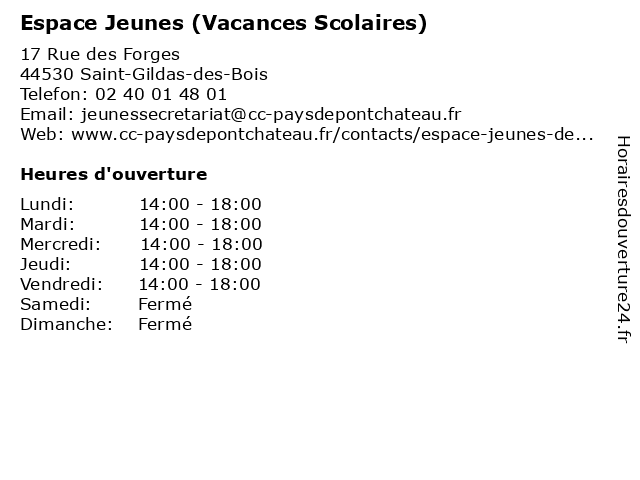1 Espace Jeunes (Vacances Scolaires) (Distance: 13,16 km) 12 Chemin du stade, 44160 Besné activités, espace, jeunes, loisirs, scolaires, vacances 2 Espace Jeunes (Périodes Scolaires) (Distance: 0,00 km) 17 Rue des Forges, 44530 Saint-Gildas-des-Bois activités, espace, jeunes, loisirs, période, périodes, scolaire, scolaires 3 E.Leclerc Espace culturel (Distance: 9,20 km) . Route de Nantes, 44160 Pontchateau culturel, e.leclerc, espace, service, services, services à la personne 4 Espace Jeunes (Périodes Scolaires) (Distance: 9,39 km) 17 Rue des Ruais, 44780 Missillac activités, espace, jeunes, loisirs, période, périodes, scolaire, scolaires 5 Espace Jeunes (Périodes Scolaires) (Distance: 13,16 km) 12 Chemin du stade, 44160 Besné activités, espace, jeunes, loisirs, période, périodes, scolaire, scolaires 6 E.Leclerc Espace Culturel (Distance: 15,18 km) Avenue jean burel, 44460 Saint Nicolas de Redon culturel, e.leclerc, espace, fournisseur de matériel audiovisuel, librairies, magasin de jeux vidéo, magasin de musique, matériel de photographie, matériel vidéo, services et matériel vidéo |