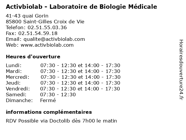 | Lundi | 07:30-12:30 et 14:00-17:30 |