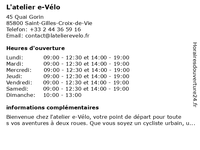 | Samedi | 09:00-12:30 et 14:00-19:00 |