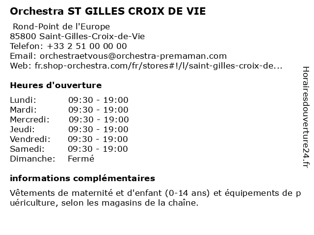 Termes de recherche pour Orchestra ST GILLES CROIX DE VIE:de, st, croix, gilles, vie, vêtements, mode, bebe, orchestra, enfant, premaman, puericulture, prêt à porter |