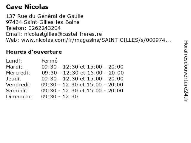 | Mercredi | 09:30-12:30 et 15:00-20:00 |