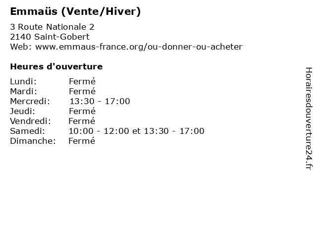 | Samedi | 10:00-12:00 et 13:30-17:00 |