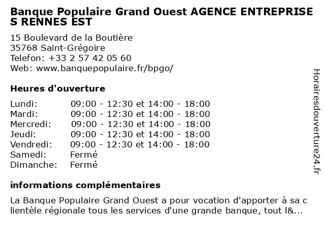 Termes de recherche pour Banque Populaire Grand Ouest AGENCE ENTREPRISES RENNES EST:grand, rennes, agence, est, ouest, banque, entreprises, populaire |
