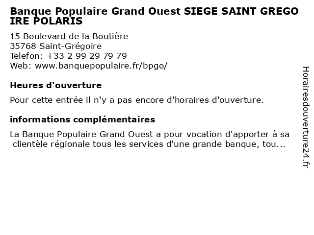 | Appeler Banque Populaire Grand Ouest SIEGE SAINT GREGOIRE POLARIS | |