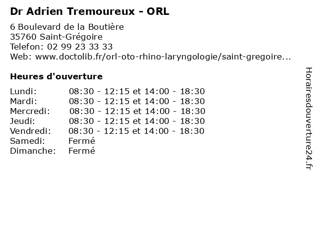 | Lundi | 08:30-12:15 et 14:00-18:30 |