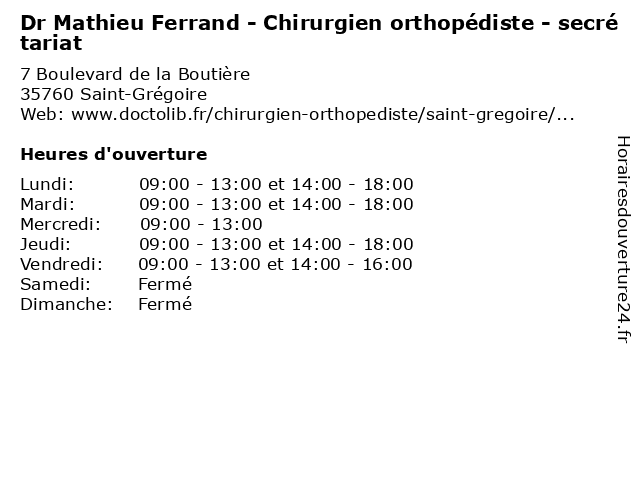 Termes de recherche pour Dr Mathieu Ferrand - Chirurgien orthopédiste - secrétariat:ferrand, mathieu, med, medecine, secretariat, traitement, docteur, médecin, consultation, dr, chirurgien, orthopédiste |