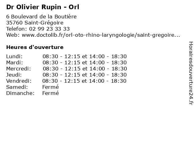 | Lundi | 08:30-12:15 et 14:00-18:30 |