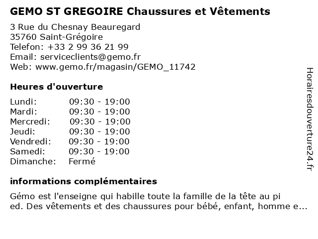 Termes de recherche pour GEMO ST GREGOIRE Chaussures et Vêtements:et, st, chaussures, vêtements, vêtements bébé, maroquinerie, lingerie, gemo, vêtements femme, gregoire, vêtements homme, bijoux et accesoires, magasin bébé, mode et habillement, vêtements enfant |