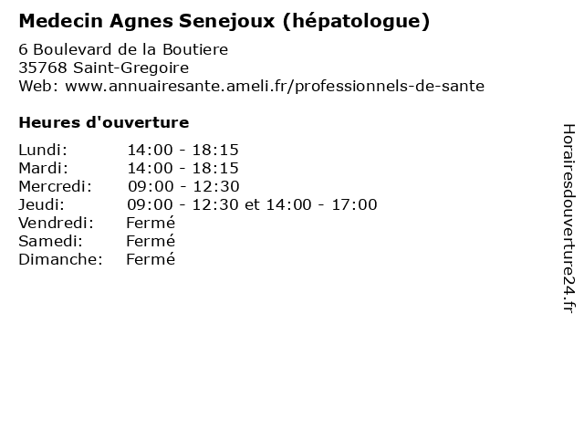 | Jeudi | 09:00-12:30 et 14:00-17:00 |