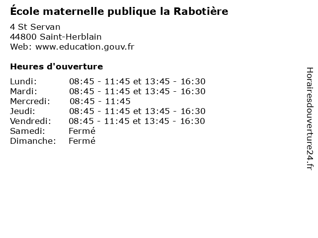 | Lundi | 08:45-11:45 et 13:45-16:30 |