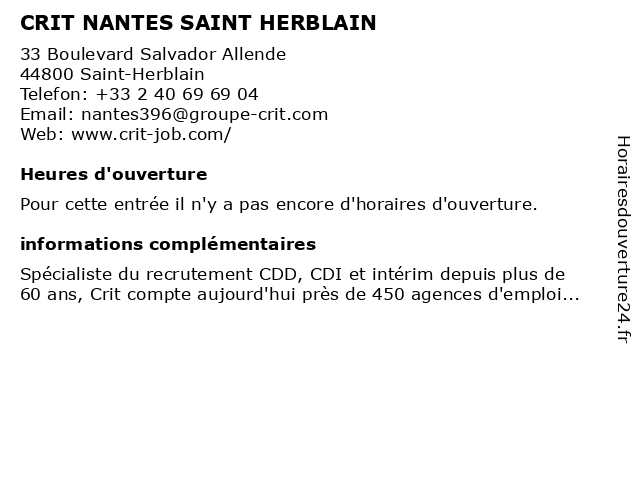Appeler CRIT NANTES SAINT HERBLAIN | |