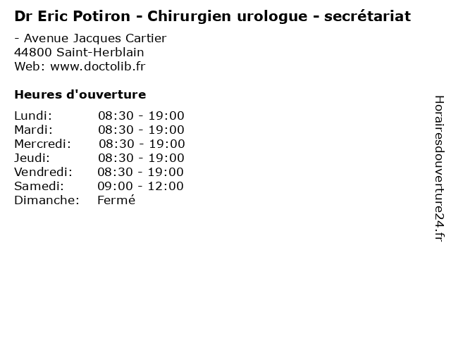 | Lundi | 08:30-19:00 |