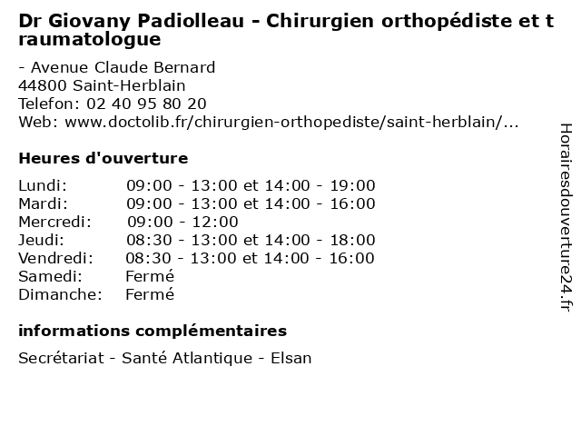 1 Dr Vincent Gaudiot - Chirurgien orthopédiste - secrétariat (Distance: 0,00 km) - Avenue Claude Bernard, 44800 Saint-Herblain chirurgien, consultation, docteur, dr, gaudiot, med, médecin, médecine, orthopédiste, secrétariat, traitement, vincent 2 Dr Stéphane Paumier - Chirurgien orthopédiste - secrétariat (Distance: 0,00 km) - Avenue Claude Bernard, 44800 Saint-Herblain chirurgien, consultation, docteur, dr, med, médecin, médecine, orthopédiste, paumier, secrétariat, stéphane, traitement 3 Dr Victor Lestienne - Chirurgien orthopédiste et traumatologue (Distance: 0,00 km) - Avenue Claude Bernard, 44800 Saint-Herblain chirurgien, dr, et, lestienne, orthopédiste, traumatologue, victor 4 Dr Philippe Bellemere - Chirurgien orthopédiste (Distance: 0,00 km) - Avenue Claude Bernard, 44800 Saint-Herblain bellemere, chirurgien, consultation, docteur, dr, med, médecin, médecine, orthopédiste, philippe, secrétariat, traitement 5 Medecin Didier Capon (Chirurgien orthopédiste et traumatologue) (Distance: 0,02 km) . Avenue Claude Bernard, 44819 Saint-Herblain capon, chirurgien, didier, docteur, et, medecin, orthopédiste, sante, services, traumatologue 6 Dr. Philippeau Jean-Marie - Chirurgien orthopédiste (Distance: 4,01 km) 78 Rue Paul Bellamy, 44000 Nantes chirurgien, docteur, dr., jean, marie, medecins, orthopédiste, philippeau, sante |
