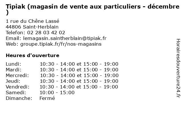 | Mardi | 10:30-14:00 et 15:00-19:00 |