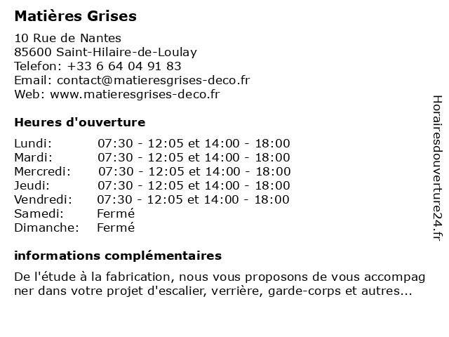 | Mercredi | 07:30-12:05 et 14:00-18:00 |