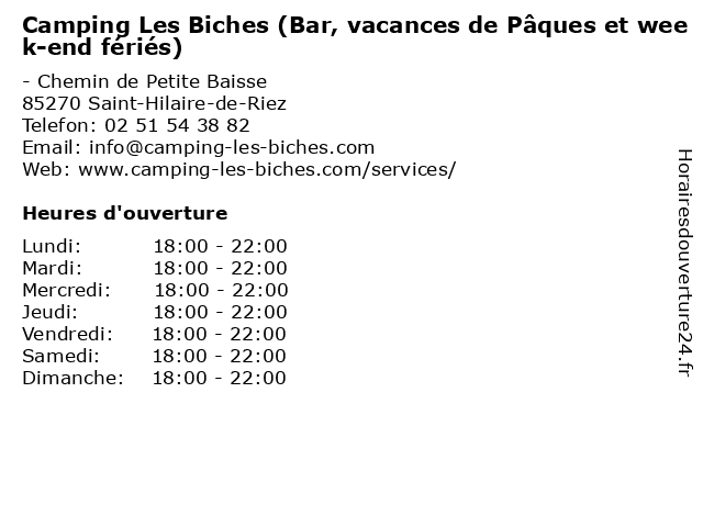 | Samedi | 18:00-22:00 |