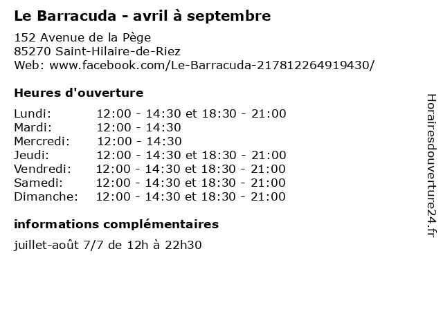 Termes de recherche pour Le Barracuda - avril à septembre:pizza, le, kebab, restaurants, septembre, avril, barracuda |