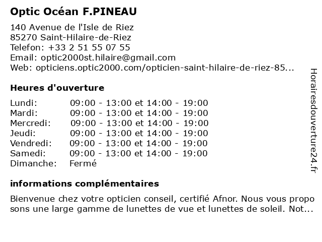 1 Opticien Saint-Hilaire-de-Riez - Optic 2000 - 140, av. de l'Isle de Riez (Distance: 0,04 km) 140 Avenue de l'Isle de Riez, 85270 Saint-Hilaire-de-Riez 140, 2000, av., de, hilaire, l'isle, lentilles de contact, lunettes de soleil, lunettes de vue, optic, optic2000, opticien, opticien optic2000, ray-ban, rayban, riez, saint 2 Opticien Saint-Gilles-Croix-de-Vie - Optic 2000 (Distance: 2,27 km) 42 Quai de la République, 85800 Saint-Gilles-Croix-de-Vie 2000, croix, de, gilles, lentilles de contact, lunettes de soleil, lunettes de vue, optic, optic2000, opticien, opticien optic2000, ray-ban, rayban, saint, vie 3 Jetset Voyages / Nombalais Océan Voyages (Distance: 2,78 km) 3 Rue Gautté, 85800 Saint Gilles Croix de Vie agence, billet d'avion et hôtel pour votre club, jetset, nombalais, océan, séjour, voyages 4 Nicolas Optic & Audition (Distance: 2,81 km) 10 rue Gautte, 85800 Saint-Gilles Croix de Vie audition, lentilles, lunettes, nicolas, optic, opticien, optique, solaire, vue 5 Opticien Saint-Jean-De-Monts - Optic 2000 (Distance: 11,34 km) 22 Boulevard du Maréchal Juin, 85160 Saint-Jean-de-Monts 2000, de, jean, lentilles de contact, lunettes de soleil, lunettes de vue, monts, optic, optic2000, opticien, opticien optic2000, ray-ban, rayban, saint 6 Jetset Voyages / Nombalais Océan Voyages (Distance: 16,19 km) 2 Rue Carnot, 85300 Challans agence, billet d'avion et hôtel pour votre club, jetset, nombalais, océan, séjour, voyages |