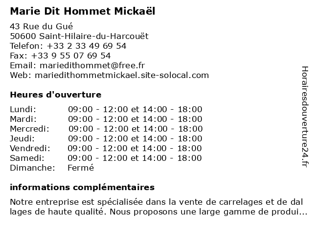 | Lundi | 09:00-12:00 et 14:00-18:00 |