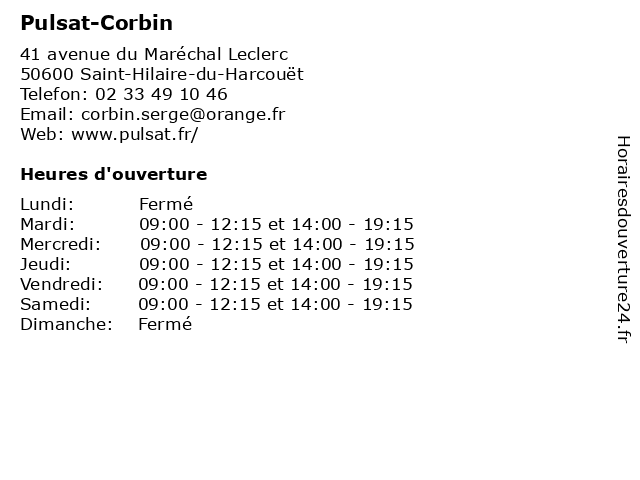 Mercredi | 09:00-12:15 et 14:00-19:15 |