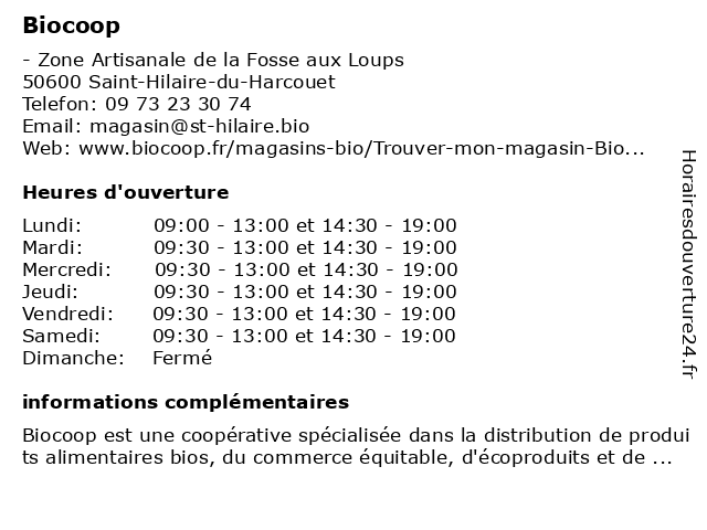 Lundi | 09:00-13:00 et 14:30-19:00 |