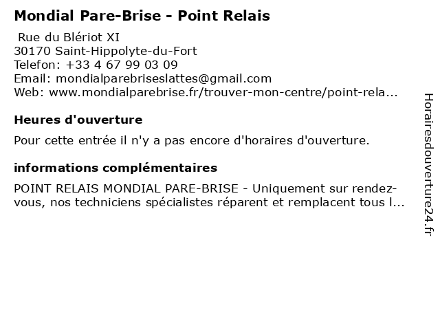 | Appeler Mondial Pare-Brise - Point Relais | |