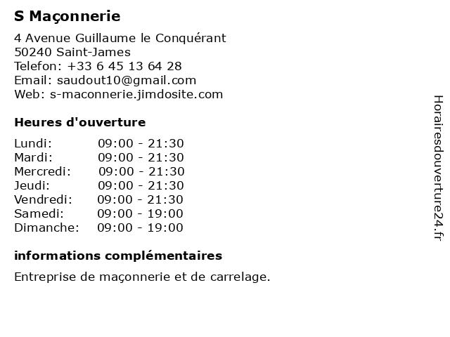 1 Duguépéroux Maçonnerie (Distance: 12,39 km) 34 Route de Vessey Boucey, 50170 Pontorson duguépéroux, maçonnerie 3 Maçonnerie Ruellan Père Et Fils (Distance: 27,16 km) 6 Rue de la Fleuriais, 35120 Epiniac et, fils, maçonnerie, père, ruellan 5 ROINEL VINCENT (Distance: 41,22 km) 4 rue des Clochets, 53500 Montenay carrelage, intérieur et extérieur, maison en pierre, maçonnerie, plaquo, roinel, rénovation, vincent 6 |