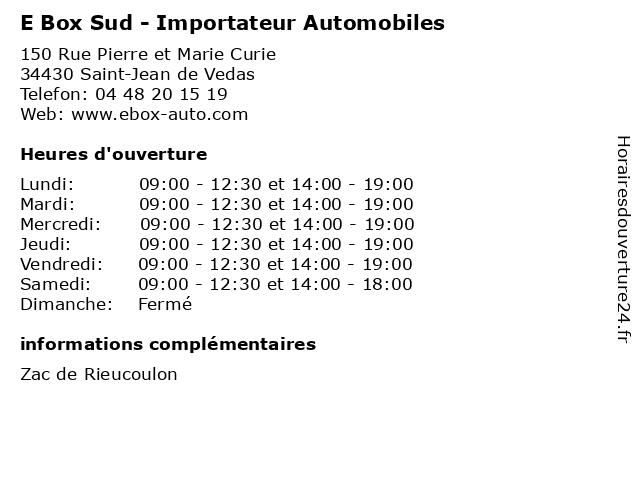 | Lundi | 09:00-12:30 et 14:00-19:00 |