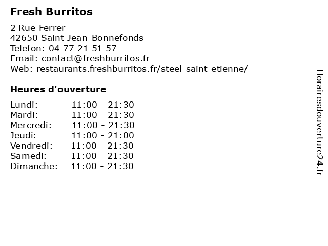 1 Fresh Burritos (Distance: 0,11 km) 2 rue Ferrer, 42000 Saint-Etienne boisson, burritos, fresh, restaurant, snack, tacos 2 Fresh Move (Distance: 0,62 km) 24 Rue Jacques Brel, 42650 Saint Jean Bonnefonds fresh, move, restaurants 3 Amin Fresh Barber (Distance: 30,06 km) 1 Rue de Tournon, 07100 Annonay amin, barber, barbier, coifeur, coiffure, coupe, fresh, homme, rasage 4 fresh. (Distance: 44,89 km) 400 Route départementale 149, 69970 Chaponnay fresh., légumes, magasin, potager, produits frais, épicerie 5 Fresh. (Distance: 45,21 km) 205 rue des frères Lumière, 69970 Chaponnay boucherie, frais, fresh., magasin, poissonnerie, primeur, produits 6 Fresh Burritos (Distance: 46,56 km) 24 Avenue Berthelot, 69007 Lyon burrito, burritos, chili, desserts, fast, food, fresh, jean, lyon, macé, rapide, restaurant, restauration, salade, tacos |