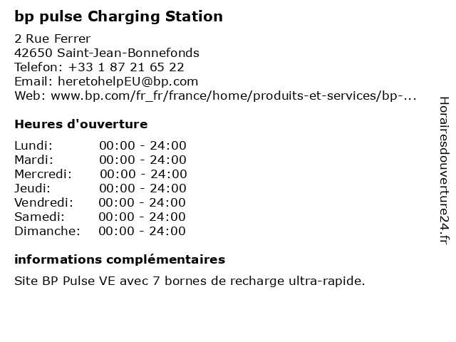 1 bp pulse Charging Station (Distance: 0,13 km) 2 Rue Ferrer, 42650 Saint-Jean-Bonnefonds borne de recharge, borne de recharge ultra rapide, bornes de recharge, bp, bp pulse, bp pulse france, charge rapide, charging, pulse, station, station de recharge electrique, ve, voiture electrique 2 bp pulse Charging Station (Distance: 0,26 km) 2 Rue Ferrer, 42650 Saint-Jean-Bonnefonds borne de recharge electrique, borne de recharge rapide, borne de recharge ultra-rapide, bornes de recharge, bp, bp pulse, charge rapide, charging, ev, pulse, station, stations de recharge électrique, ve, voiture electrique 3 STATION BP ST ETIENNE BEAULIEU (Distance: 2,55 km) 12 Boulevard Karl Marx, 42100 Saint-Étienne alimentaire, beaulieu, boutique, bp, café, car wash, carburant, carrefour express, etienne, lavage, st, station, station-essence, station-service 4 bp (Distance: 3,38 km) N88, 42650 Saint-Jean-Bonnefonds bp, café, carburant, carrefour express, pomme de pain, sandwich, station-essence, station-service 5 BP Station Service (Distance: 3,56 km) 52 Rue Daguerre, 42100 Saint Etienne bp, gas, motor, oil, petrol, service, services, station 6 BP Station Service (Distance: 4,08 km) 17 Rue Robespierre, 42100 Saint Etienne bp, gas, motor, oil, petrol, service, station |