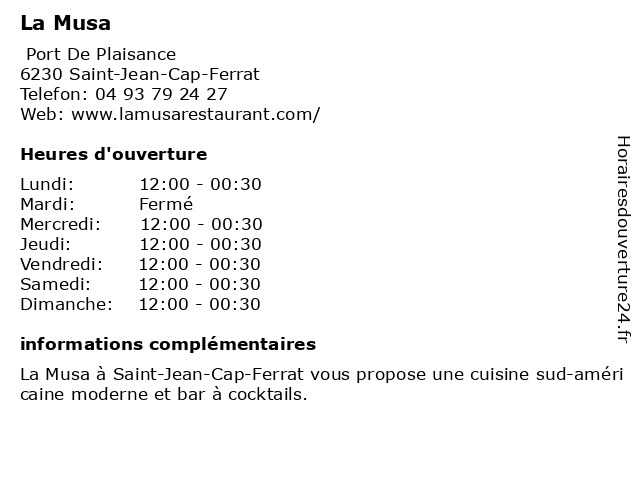| Samedi | 12:00-00:30 |